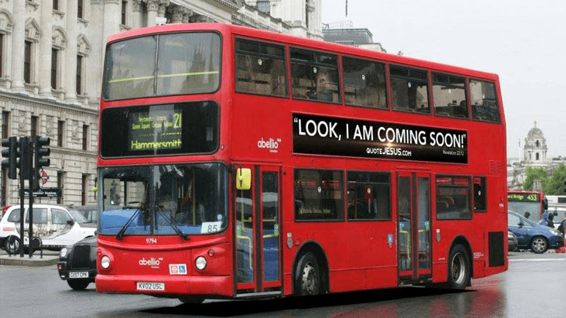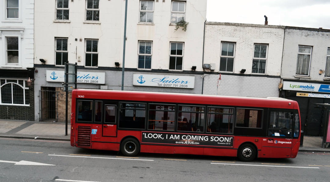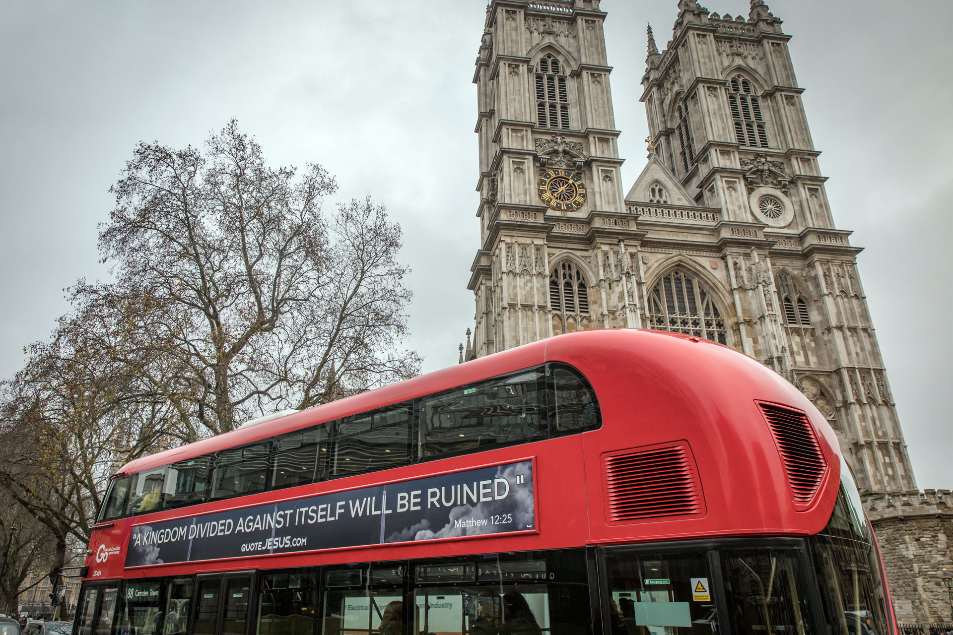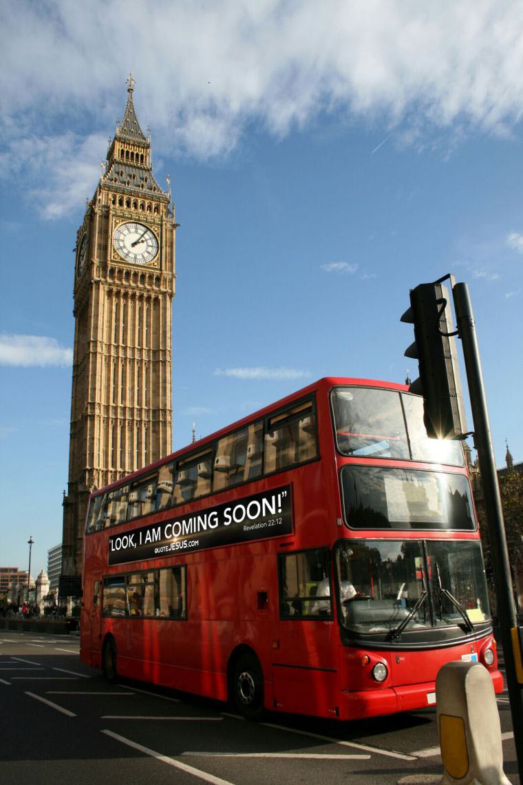 You know, I often think, “I don’t know how many people are going to read and see these adverts.” But you know, that’s not my problem. My job is to do what the Lord asked me to do and get the quotes up on the London buses. Because I believe that the Word of God is alive and sharper than any two-edge sword, it divides spirit and soul, and it even discerns the intentions of the heart. God said he would send his Holy Spirit to bring his people to a place of truth, and if and when someone reads the Jesus Quotes that is between God and that individual. My job is done.