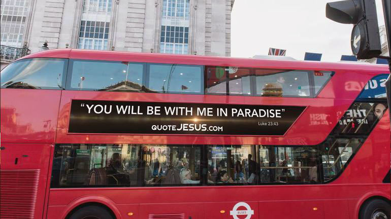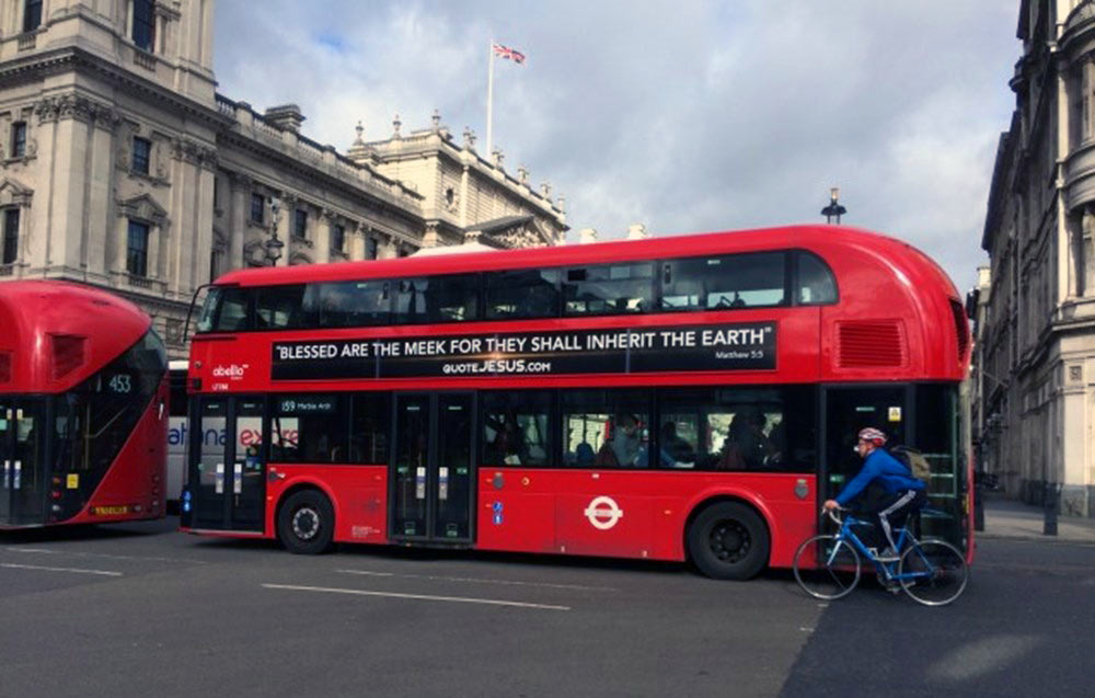 It was a supernatural experience and I heard a clear voice that said, “Here is what I want you to do.” And the whole idea of the Quote Jesus campaign came within a matter of minutes. It was a short conversation but it included the strategies, and the website name (and that was amazing because that was the only one available less than £10, as the others were several thousand Pounds for the domain name). I was so excited and it a matter of 4 weeks we were on the buses with the quotes. I mean, if I had to go through a committee I’d probably still be going through the approval stages. And here we are 6 months later.